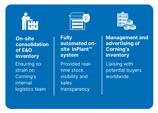 By embedding the redistribution process directly into Corning's EMS facility, InPlant™ allowed Corning to retain ownership and visibility while Component Sense took full responsibility for sales and maximising returns.