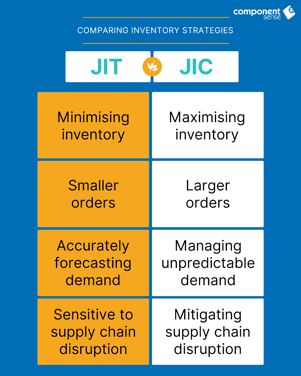 JIC: More safety stock, but higher carrying costs.