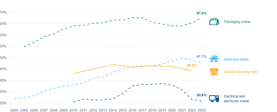 The EU’s WEEE targets are ambitious. Only about 31% of EU e-waste was formally collected and recycled in 2023.